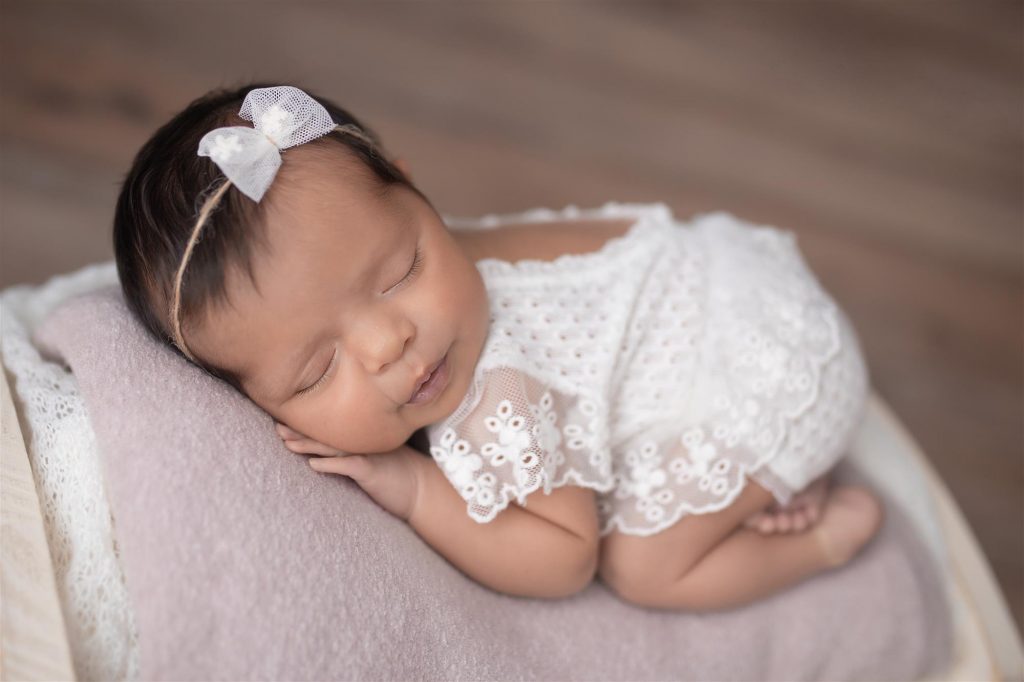Para a segurança do bebê, as fotos são realizadas durante o sono profundo.